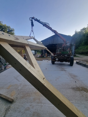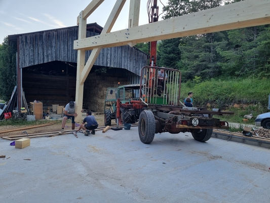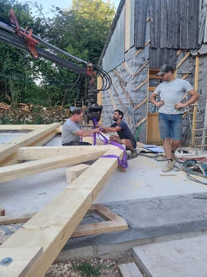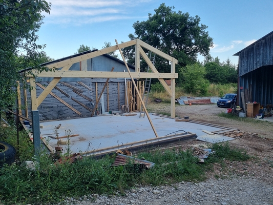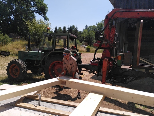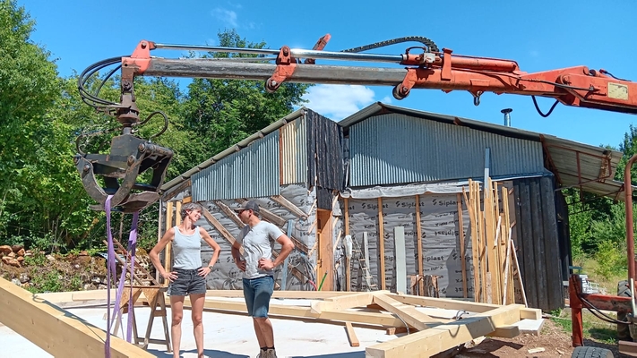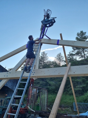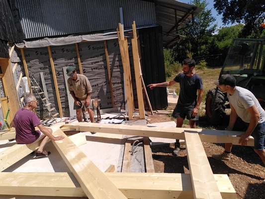 Ferme taillée, assemblée et posée par Étienne Sens, avec l'aide pour la pose de Laurent, Florine, Léopold, Alain & même Yann !