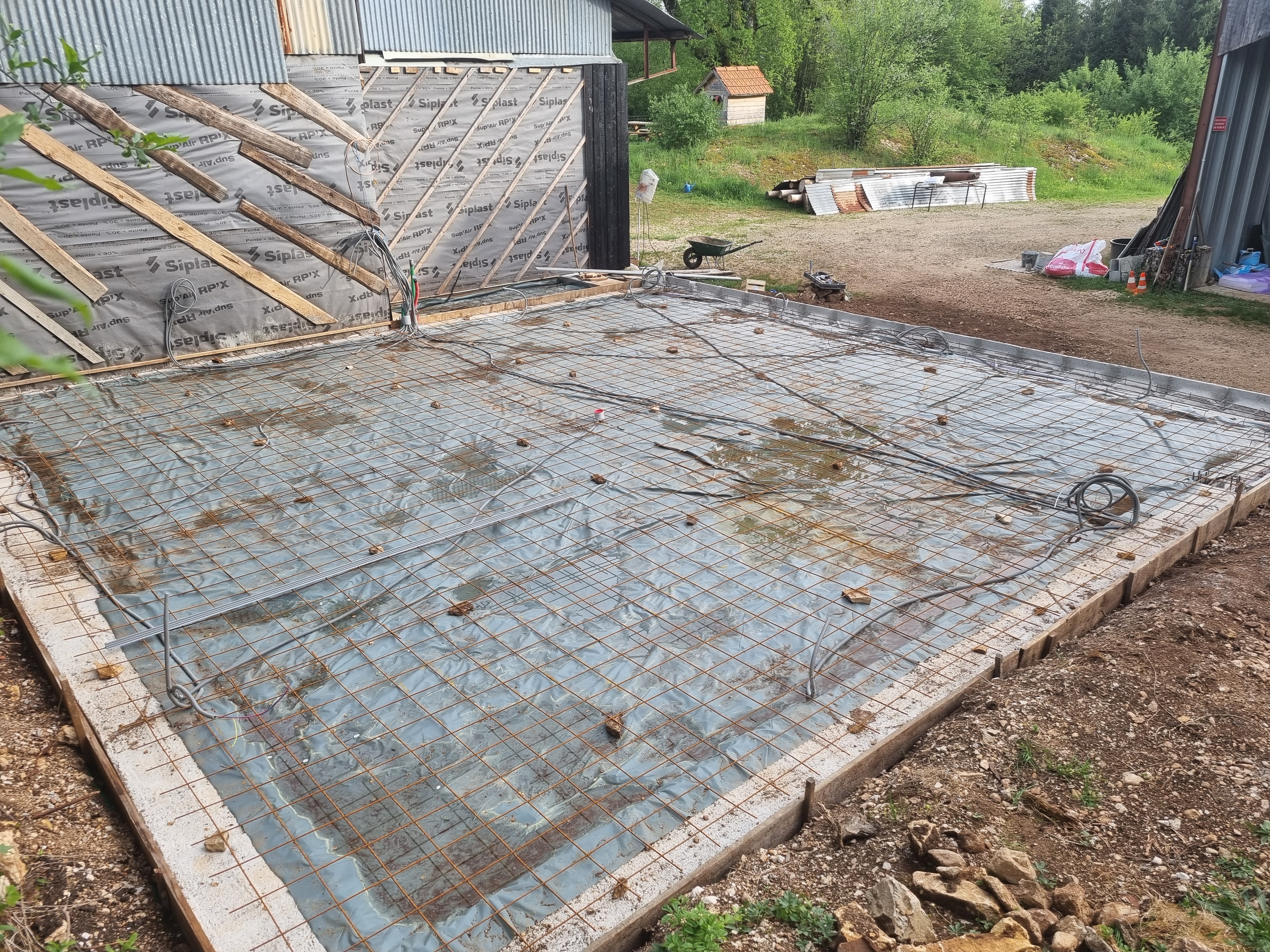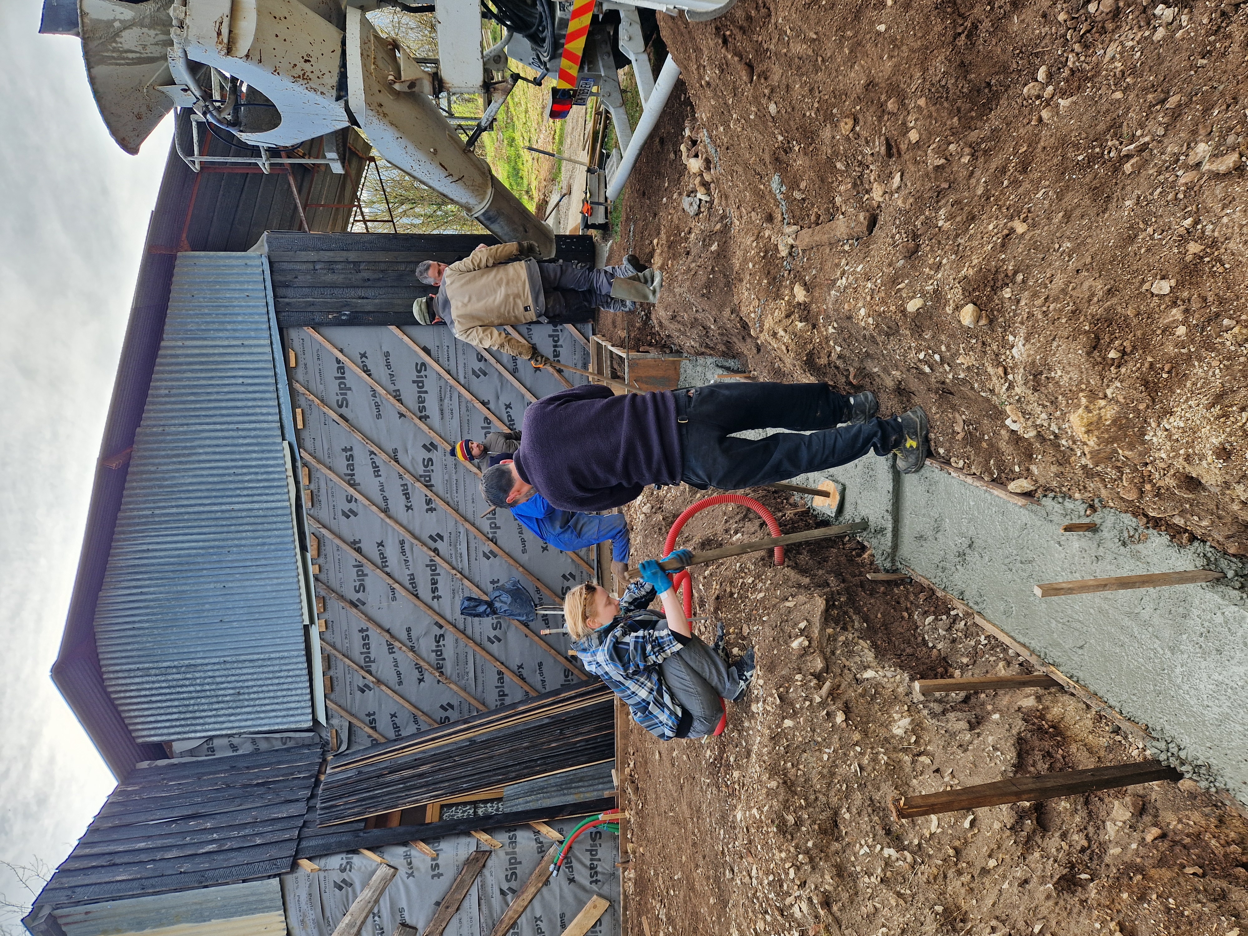 Préparation des fondations : Terrassement Coffrage des semelles Coulage des semelles Mur de soutènement sud Coffrage de la dalle Coulage de la dalle Longrine nord TerrassementTerrassement tCoffrage des semellesCoffrage des semellesCoulage de la semelleCoulage de la semelleMur de soutènementArmature dalleCoulage de la dalle Identifiez-vous pour poster des commentaires