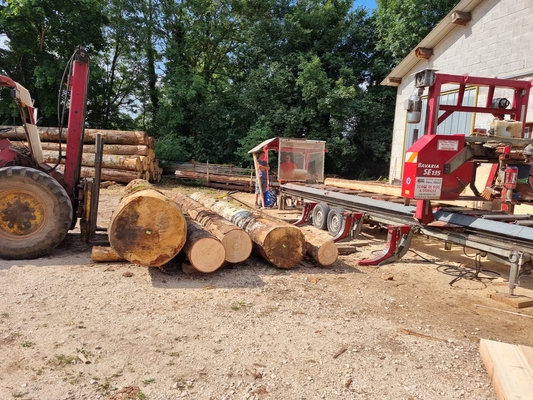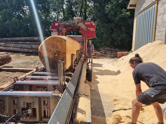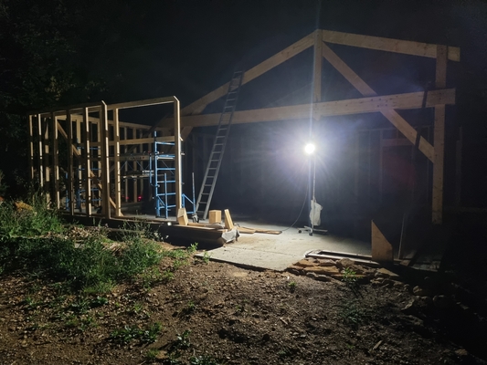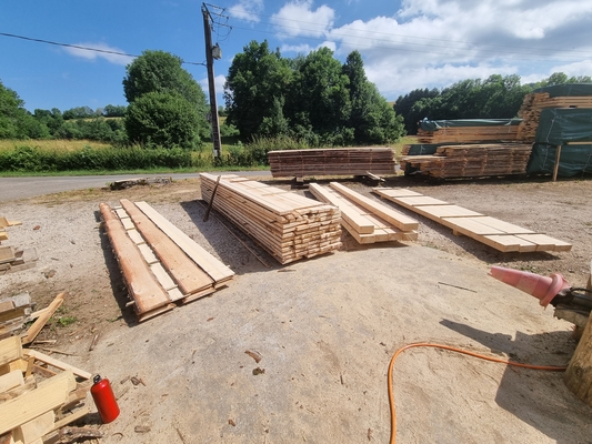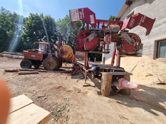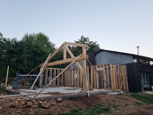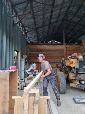 Sciage et pose de l'ossature ! Rendez-vous à la scierie mobile avec le bois déraciné tombé en forêt d'EtivalLes grumes sont amenées avec le ManitouUn tronc de sapin d'environ 130 ans qui était tombé en forêtSciage. On fait les manutentionnaires avec RémiUne partie du bois sciéChariot élévateur "à l'ancienne" pour décharger... même si en fait on a tout fait à la mainOn débite les boisEt on assemble l'ossatureMême de nuit... (pratique pour le niveau laser) Identifiez-vous pour poster des commentaires